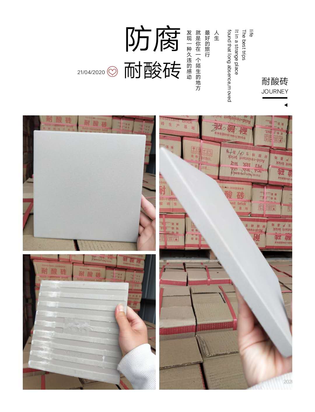 耐酸磚瓷磚是以石英、長石、粘土為主要原料,經(jīng)高溫氧化分解制成的耐腐蝕材料,耐酸解度高、吸水率低,在常溫下不易氧化,不易被介質(zhì)污染等性能,除-及熱磷酸外,對溫氯鹽水、-、---等酸類及在常溫下的任何濃度的堿類,具有抗腐作用。耐酸磚防腐 耐酸,防腐行業(yè)所需要的建筑材料,耐酸磚產(chǎn)品在防腐行業(yè)可使用墻面、地面、塔、池、罐以及露天場地均可使用,耐酸磚使用的環(huán)境不同施工時使用的粘接材料也會有很大的區(qū)別,通常使用的粘接材料有環(huán)氧膠泥、---膠泥等,