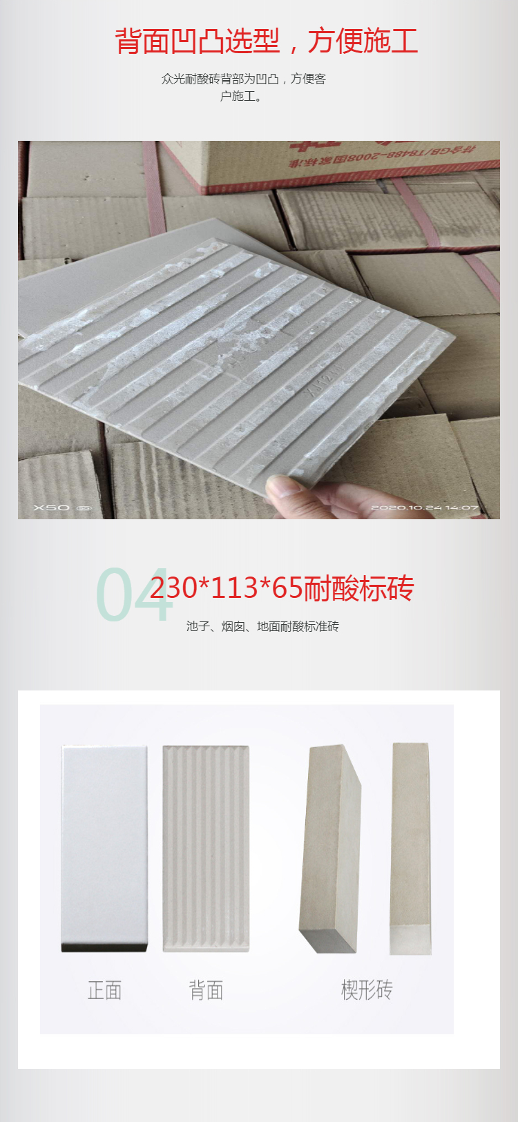 耐酸磚的國(guó)家標(biāo)準(zhǔn)是GB/T8488-2008.主要的參數(shù)有:耐酸度,吸水率,彎曲強(qiáng)度,耐急冷急熱性。中冠生產(chǎn)的耐酸磚完全符合耐酸磚的國(guó)標(biāo),并且可以提供檢測(cè)報(bào)告。其實(shí)選擇耐酸磚的標(biāo)準(zhǔn)主要有兩個(gè):由于耐酸磚的主要成分是二氧化硅,那么我們就可以從成分上觀察耐酸磚是否含有二氧化硅元素。其次可以從外表來(lái)看,耐酸磚是否存在裂紋或殘缺,或者是否有斑點(diǎn)、缺釉、干釉等現(xiàn)象出現(xiàn),因?yàn)檫@些問題都是施工過程中的不達(dá)標(biāo)導(dǎo)致的。后呢我們可以從耐酸磚的規(guī)格上判斷,耐酸磚的規(guī)格都是嚴(yán)格按照一定的尺寸來(lái)進(jìn)行加工的,這樣便于鋪設(shè)時(shí)候的整齊美觀,如果出現(xiàn)規(guī)格尺寸大小不一致的情況也是耐酸磚不達(dá)標(biāo)的表現(xiàn)之一。